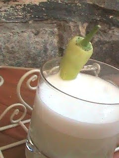 Se mezclan todos los ingredientes en la juguera o coctelera luego se pasa por un colador y se sirve en copa baja,adornar con un trozo de ají verde o amarillo.
