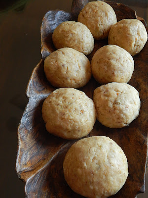 Removemos con una cuchara de madera y también con las manos hasta obtener una masa cremosa,pero que no se nos pegue en las manos,hacemos bolos y dejamos reposar unos minutos.