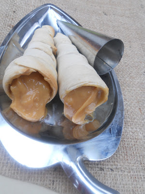 Un típico dulce chileno muy característico de fiestas patrias y en ocaciones especiales siempre estaban presentes estos ricos pastelitos hechos por mi madre, es una masa suave rellena con manjar o dulce de leche recién hecho,también se puede rellenar con crema pastelera y en versión salado con pollo molido y mayonesa,es estupendo.