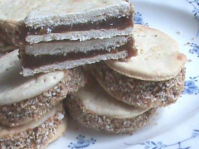 Hornear a 180° por 30 minutos y desmoldar una vez fríos.se rellenan con manjar o dulce de leche casero.